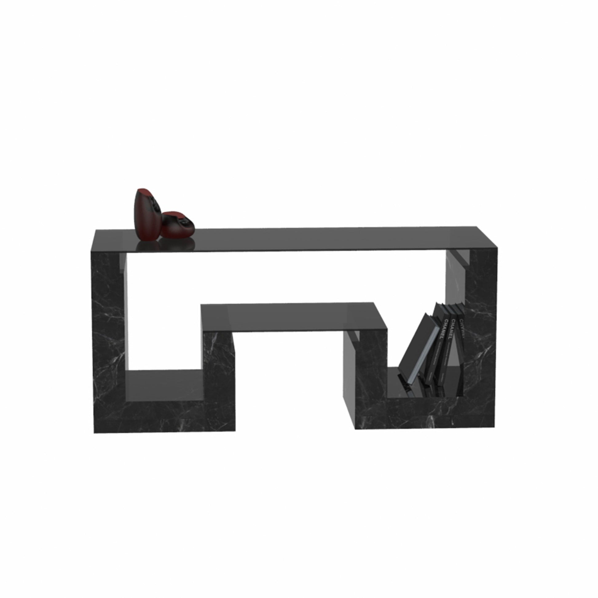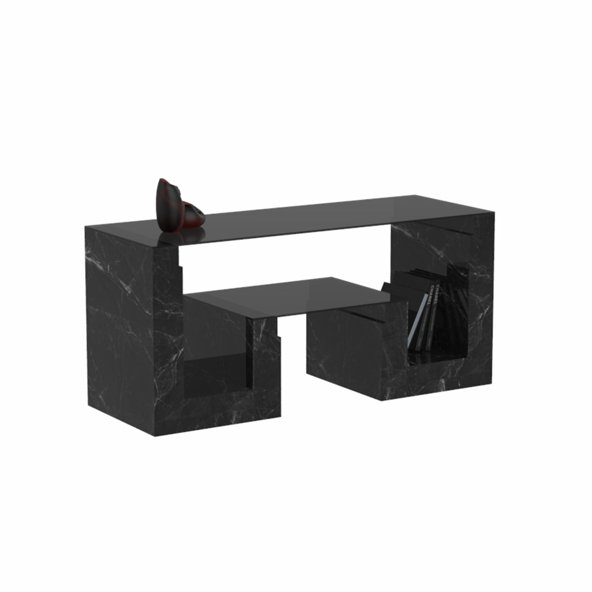 A bold inversion of the original, crafted in Spanish black stone along with tinted black glass tops. Its mirrored design turns the familiar into the unexpected, emphasizing the beauty of structure and shadow.
